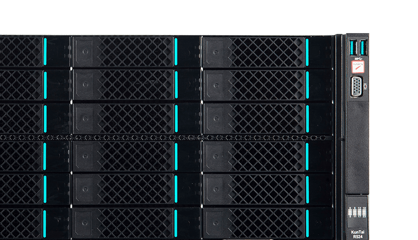 KunTai R524 存储型服务器是78m威九国际数码基于鲲鹏处理器推出的新一代 ARM数据中心服务器。。。主要面向存储业务,,,具有海量存储、、、、高性能、、、低功耗以及易扩展的特点,,,适合为大数据分析、、软件定义存 储等应用场景的工作负载进行髙效加速。。